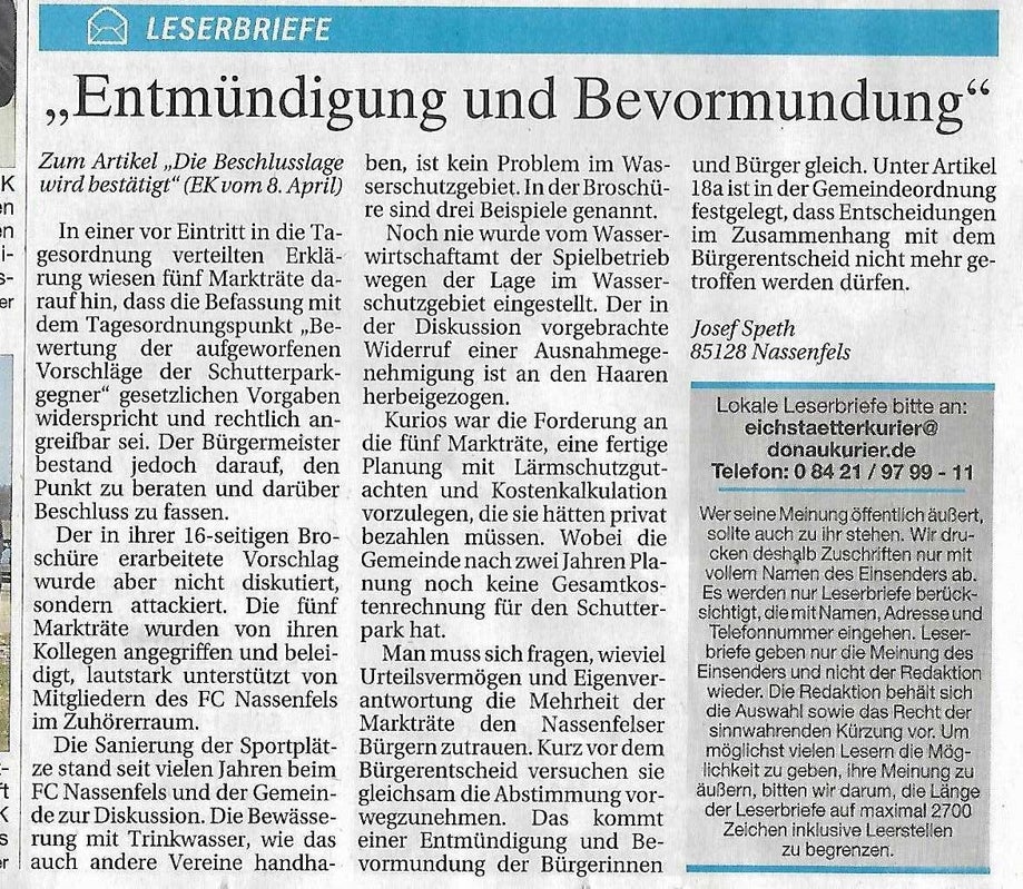 21./22. November, Leserbrief im Eichstätter Kurier